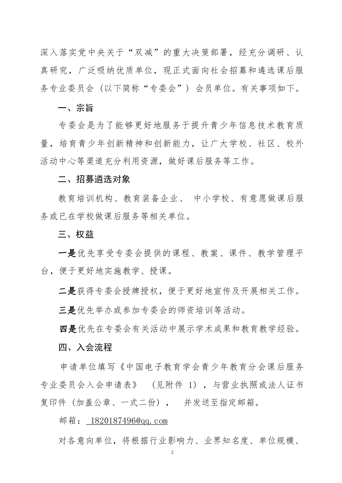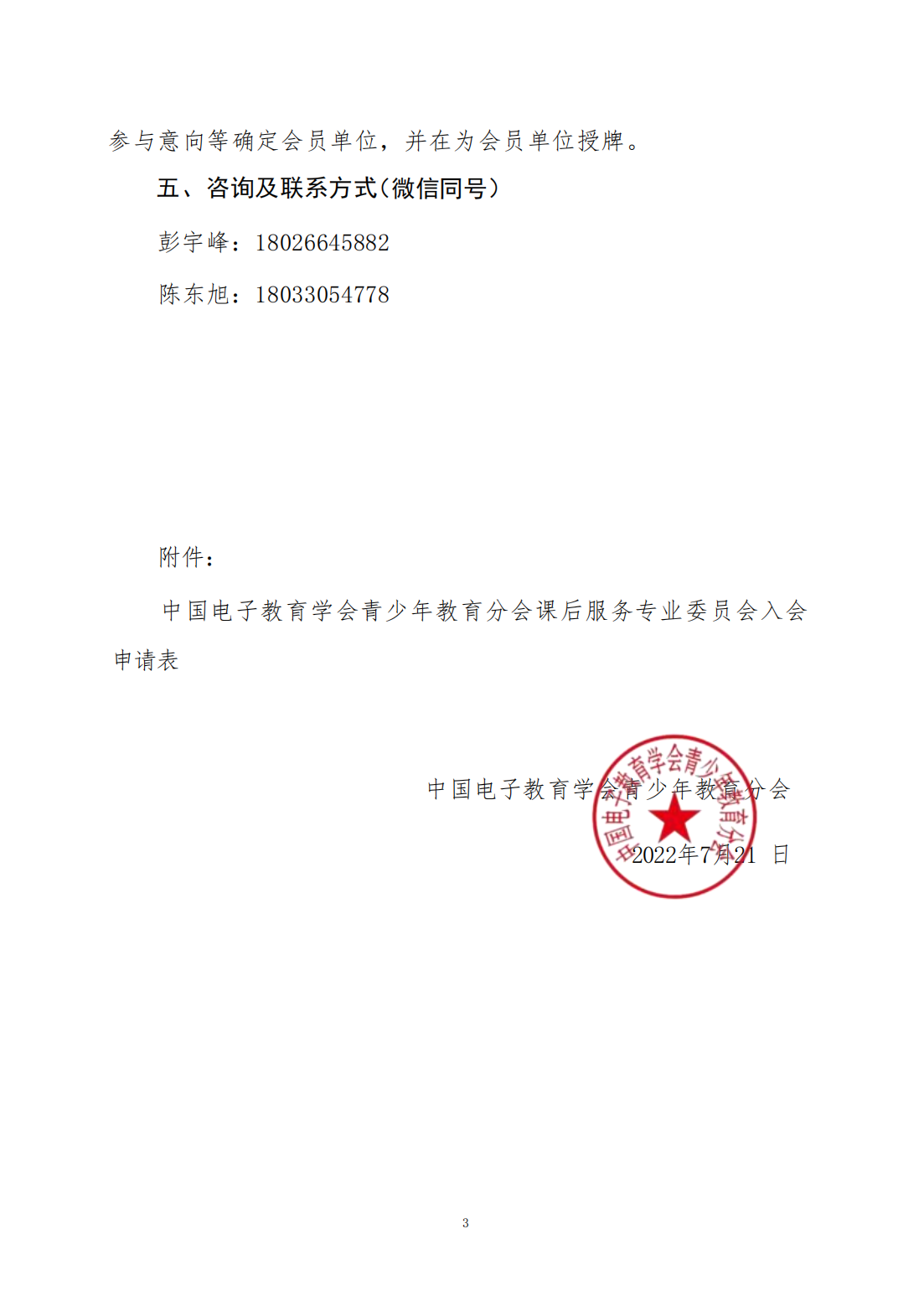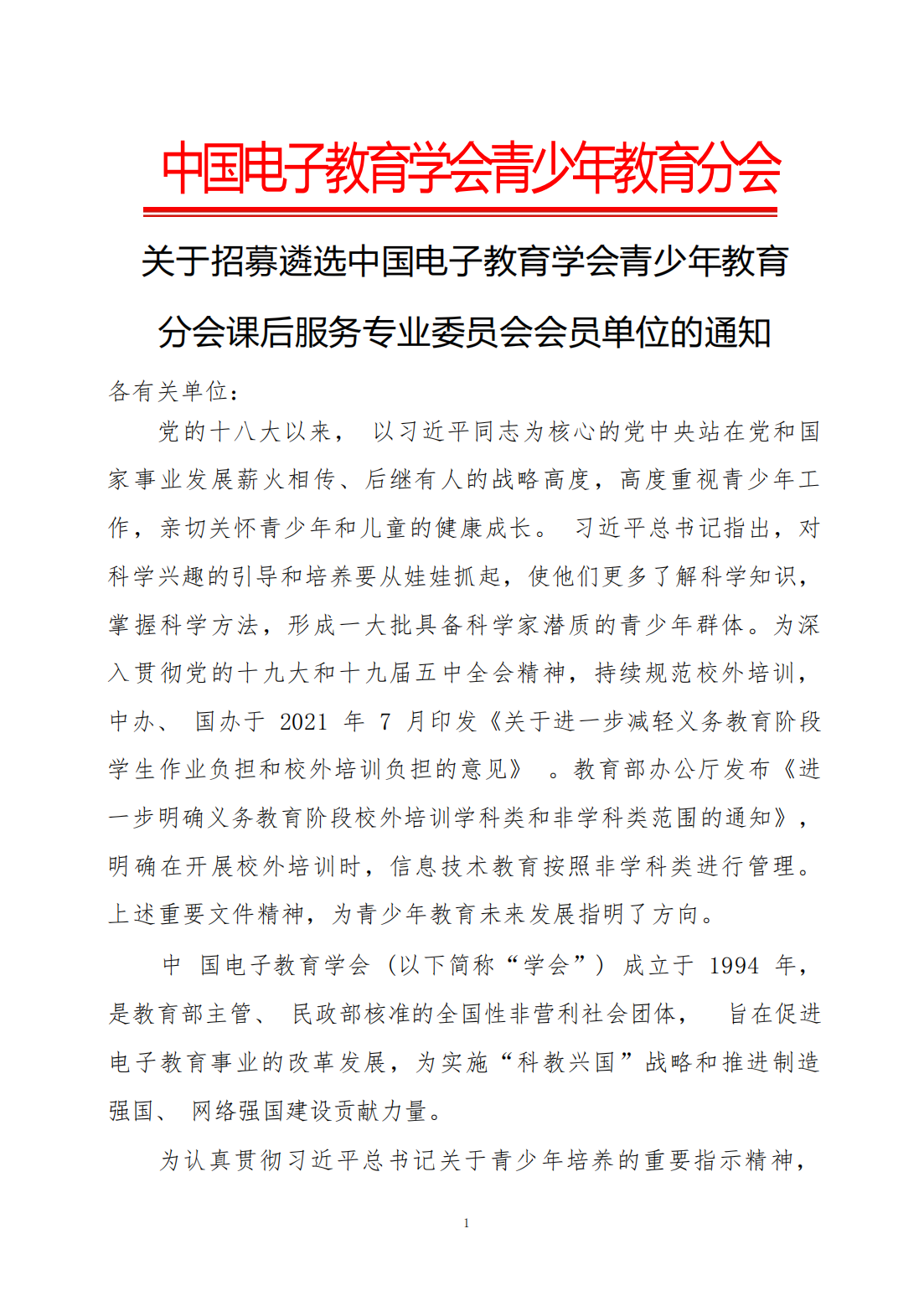 关于招募遴选中国电子教育学会青少年教育分会课后服务专业委员会会员单位的通知2022-07-21