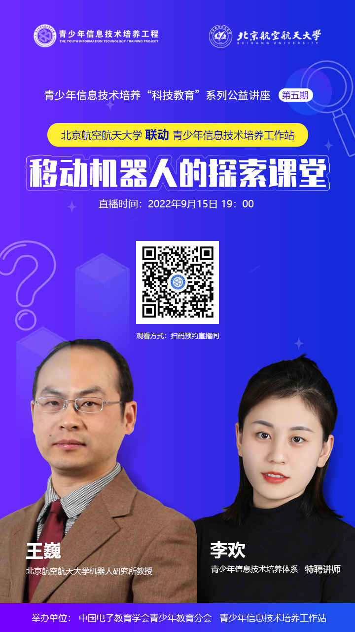 那么,从“机器”变成“机器人”的秘密到底是什么呢?还有哪些更前沿、更智能的技术等待我们去了解呢……青少年信息技术培养工作站与北京航空航天大学机器人研究所联动,为大家开设了“移动机器人的探索课堂”,让我们一起带着问题和机器人玩耍吧!