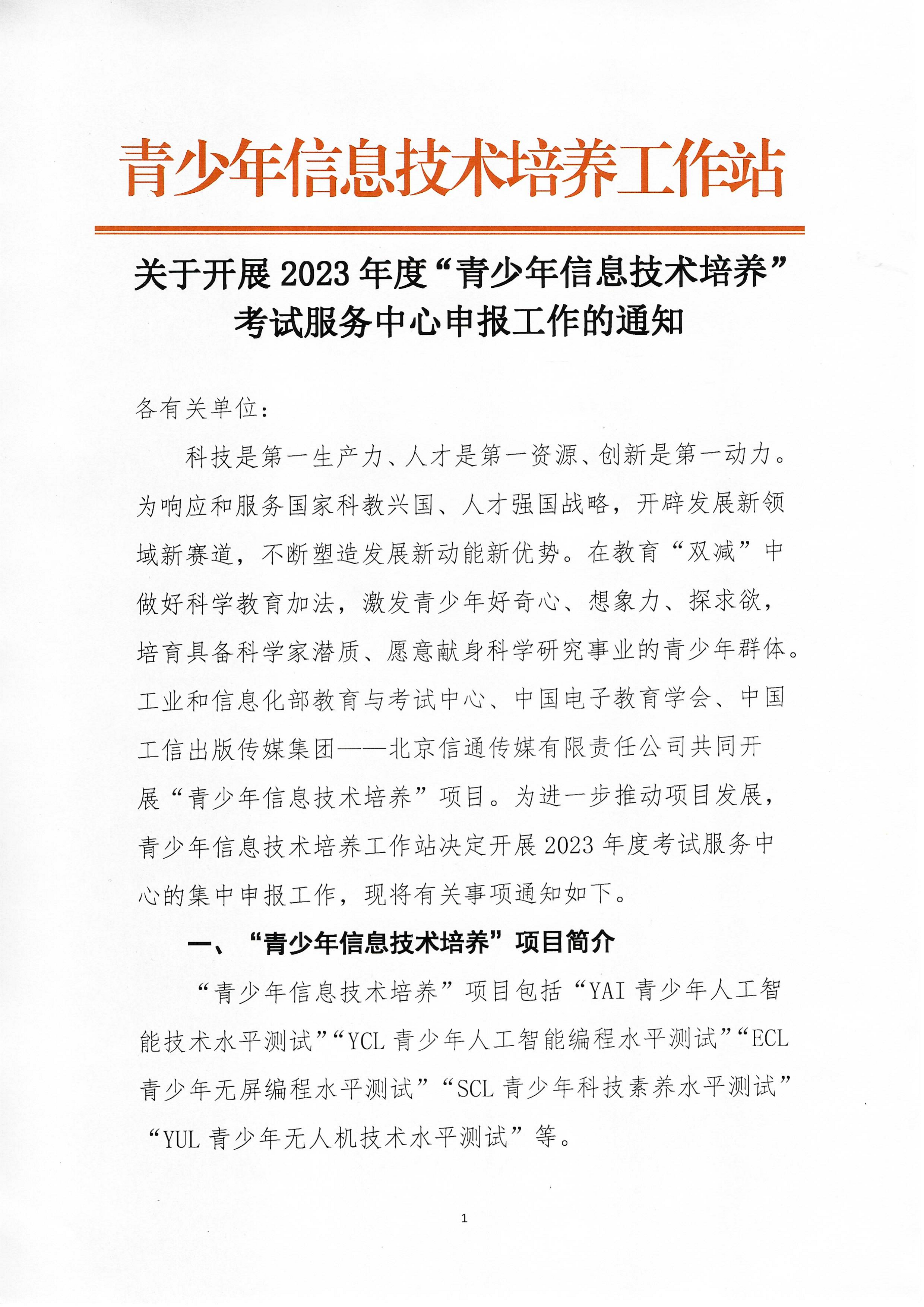 关于开展2023年度“青少年信息技术培养”考试服务中心申报工作的通知2023-03-24