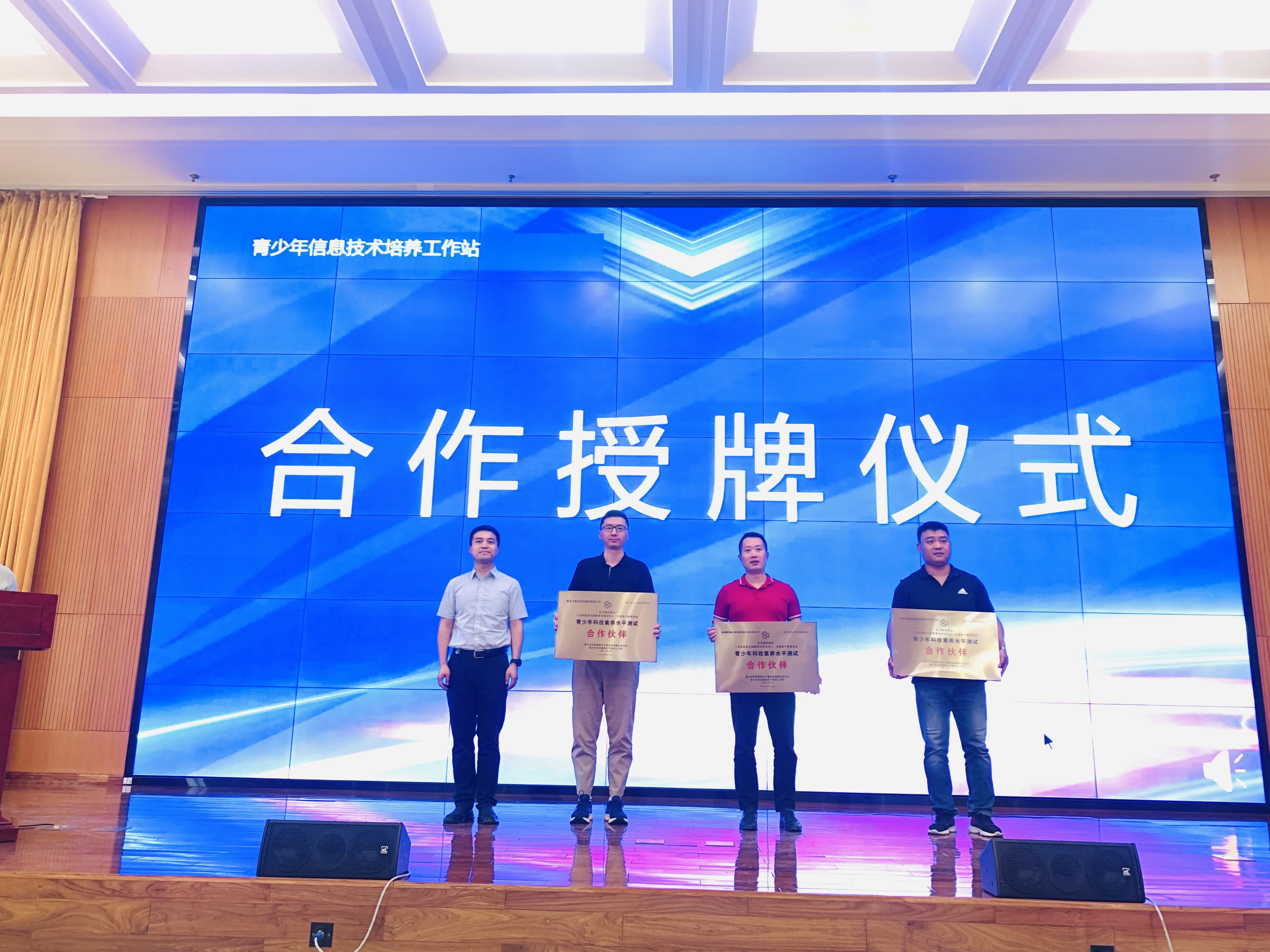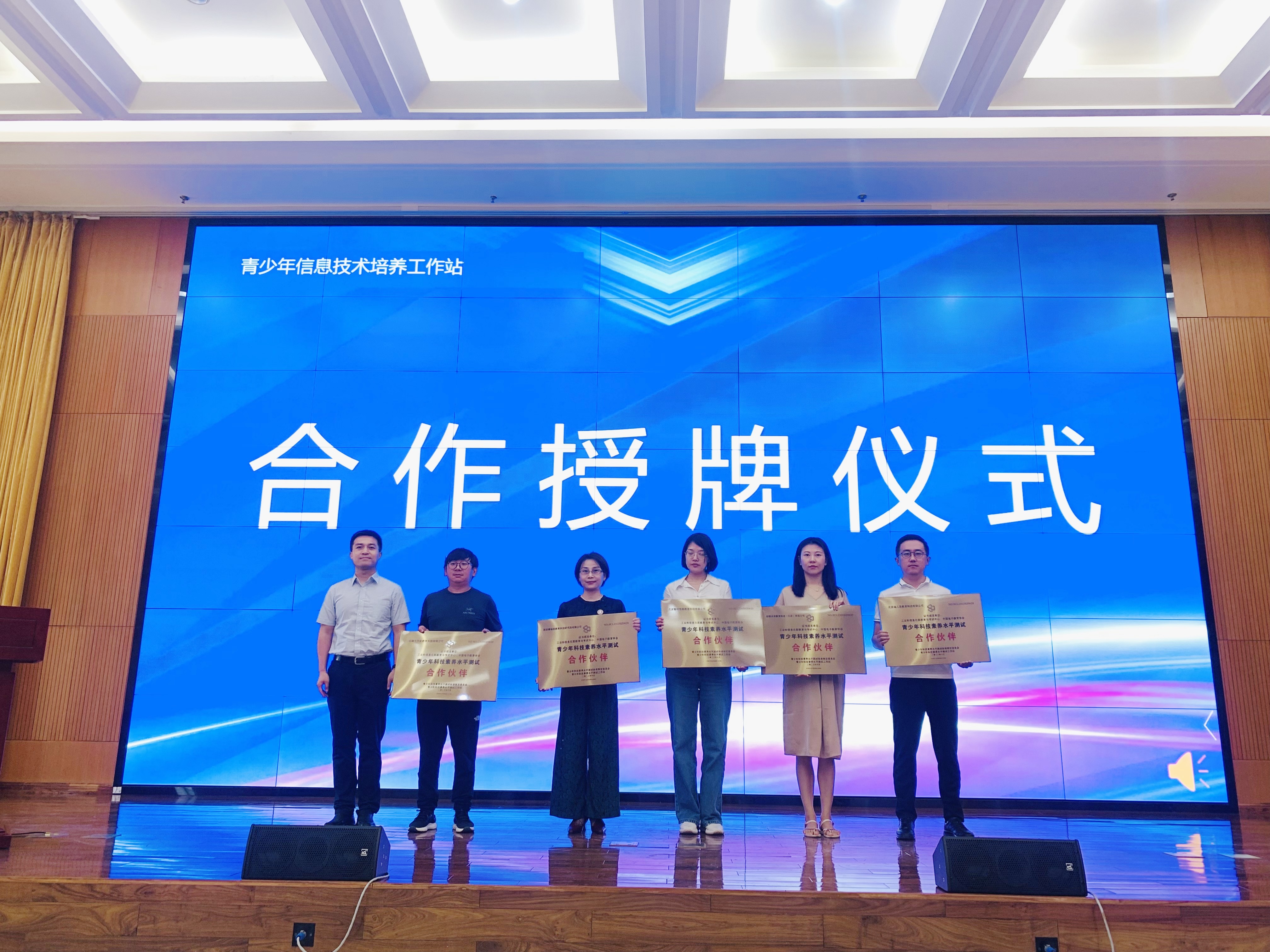 北京信通传媒有限责任公司副总经理付方明向来自全国的十余家青少年科技素养水平测试项目合作伙伴授牌,合作伙伴代表也纷纷发言,共同致力项目在全国范围内推广落地。