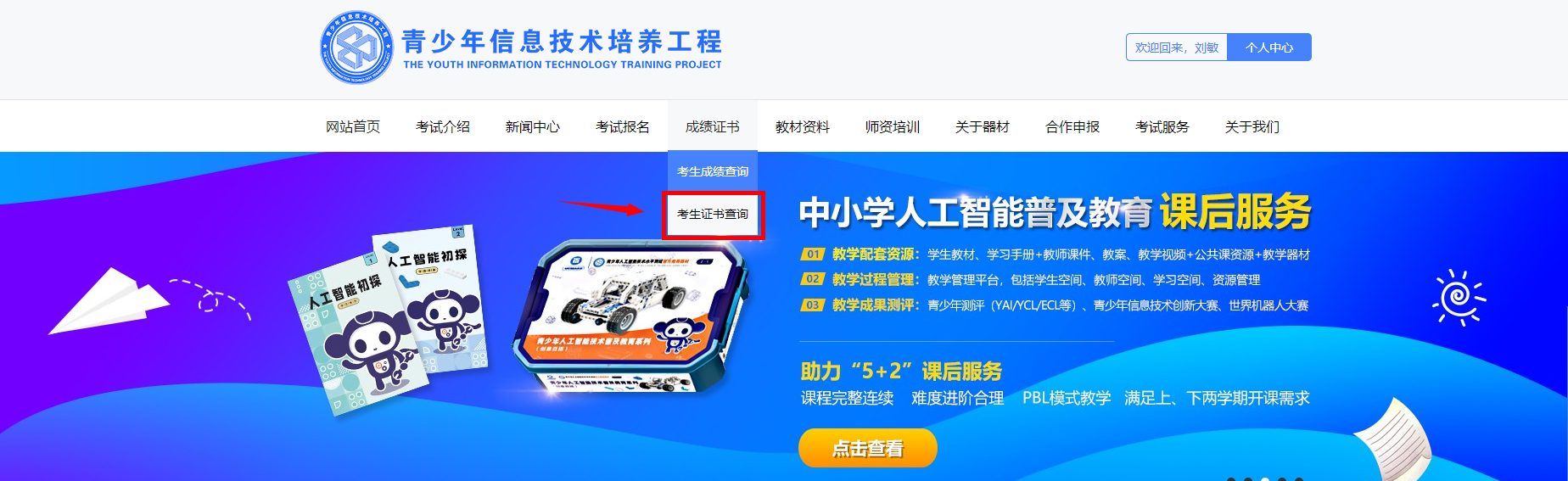 第1步,登录官网http://www.ycltest.com/,点击“考生证书查询”。