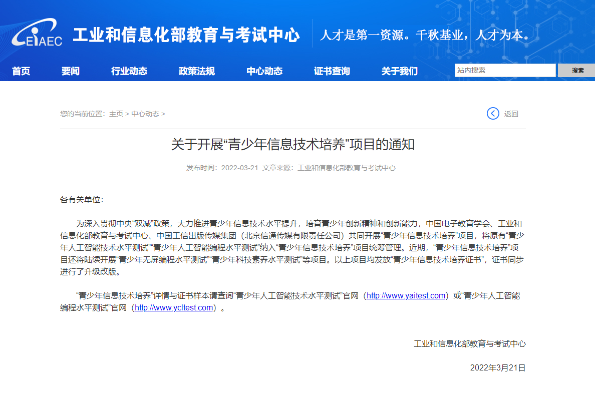 文章来源:工业和信息化部教育与考试中心官网